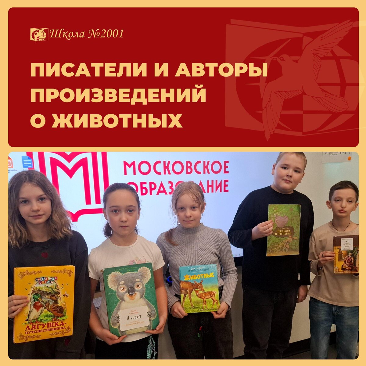 В Южной начальной школе прошла тёплая и увлекательная выставка книг о животных. Ребята из 4 «П» с радостью принесли свои любимые произведения и поделились ими с одноклассниками. Выставка стала настоящим пространством для общения: дети рассказывали о прочитанном, советовали книги друг другу, делились эмоциями и обсуждали любимых героев. Получился живой и искренний разговор о том, что важно и интересно. #ДОНМ #Школа2001 #ДопОбразование Все новости и события Школы №2001 — в нашем канале в МАХ