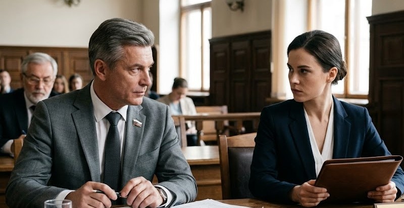 В суде Игорь внезапно вскочил, нарушая протокол. Его лицо покраснело, маска благородного политика дала трещину.