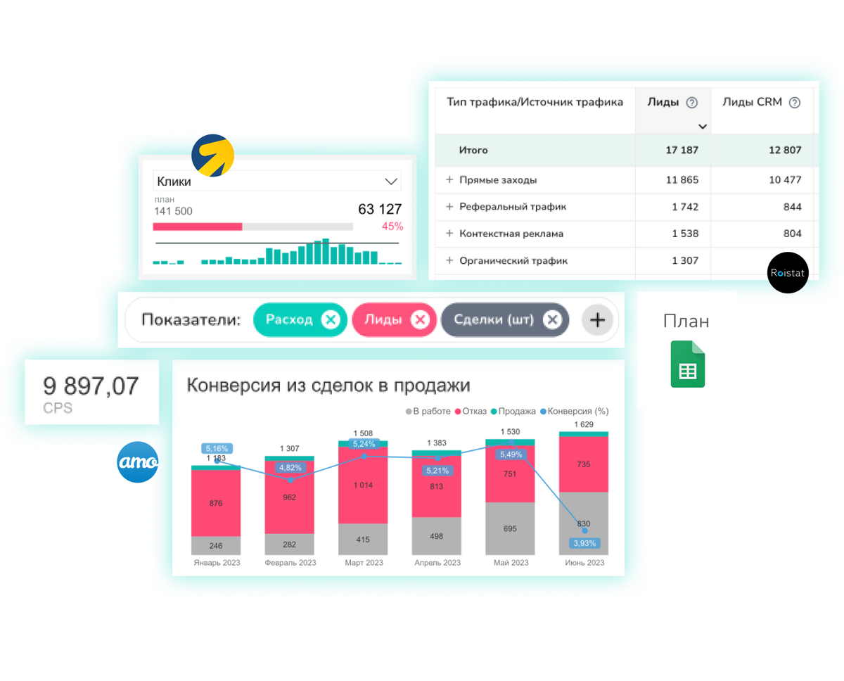 - реальные кейсы с выручкой и стоимостью заявки