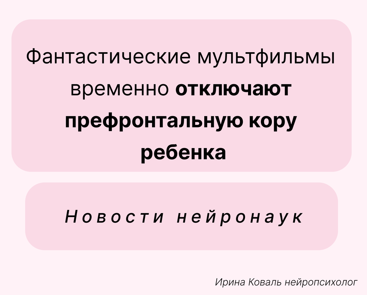 Вы наверняка замечали, что после просмотра некоторых мультфильмов ребенок становится неуправляемым, не может сосредоточиться на простой просьбе или, наоборот, выглядит «заторможенным». Это часто списывают на мелькание кадров, яркие спецэффекты или просто перевозбуждение. Но последние исследования показали, что дело не в том, как быстро все меняется на экране, а в том, что именно происходит в сюжете. Фантастическое содержание мультфильмов оказывает немедленное негативное влияние на способность ребенка концентрироваться и контролировать свои импульсы. Динамичный монтаж сам по себе такого эффекта не дает. ➡️Представьте, что мозг ребенка - это суперкомпьютер, который только учится обрабатывать информацию об этом мире. У него уже есть базовое «программное обеспечение» - понимание простых законов: мяч катится, вода льется, кошка мяукает, люди ходят по земле. Когда ребенок смотрит реалистичный мультфильм (даже с антропоморфными животными) - про дружбу и конфликты, работу и учебу - его мозг ра