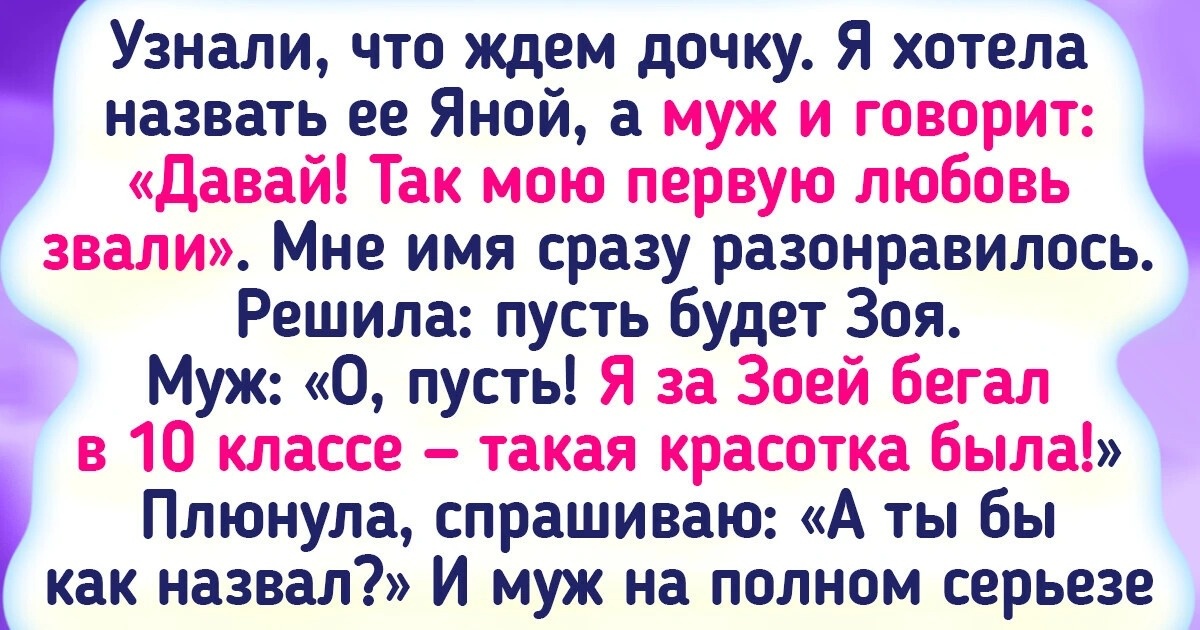 Узнали, что ждем дочку. Муж такой: «Назовем Галей - в честь моей мамы!» Я аж поперхнулась. Со свекровью у меня очень сложные отношения, да и не хочу я, чтоб дочку дразнили: «Галя, у нас отмена!» Я сказала, что против. Муж разболтал все мамочке. А та и говорит: «Вам надо назвать дочку Тамарой - я ее во сне видела, вашу Тому. И тогда она точно счастливой будет!" Я сначала только ухмыльнулась, мол, сами разберемся, но за оставшиеся месяцы беременности так и не нашла более красивого имени. Назвали дочку Томой - ей это имя очень идет. Да и со свекровью отношения теплее стали.