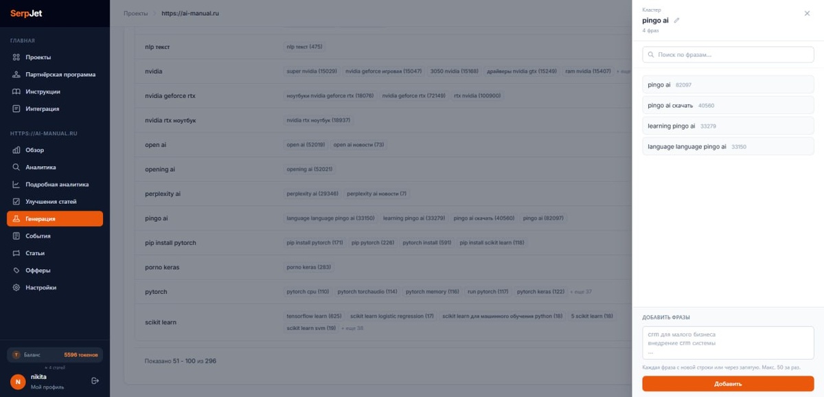 - Теперь работать с кластерами стало удобно. Можно удалять \ добавлять ключевые слова.