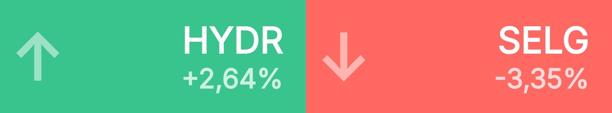 : РусГидро • 0,46 ₽ • 2,64% Совкомфлот • 91,73 ₽ • 2,35% Роснефть • 508 ₽ • 2,24% Новатэк • 1 386 ₽ • 2,19% Татнефть • 644 ₽ • 2,17% ЮМГ • 866 ₽ • 1,97% РуссНефть • 137 ₽ • 1,79% Татнефть п • 596 ₽ • 1,53% Газпром • 129 ₽ • 1,09% ЭсЭфАй • 859 ₽ • 1,06% 🔻 Топ-10 лидеров падения среди крупнейших акций: Селигдар • 54,54 ₽ • -3,35% Группа Поз • 1 132 ₽ • -2,73% Русал • 42,92 ₽ • -2,71% Полюс • 2 323 ₽ • -2,65% Эн+ • 494 ₽ • -2,57% Мосэнерго • 2,17 ₽ • -1,72% VK • 305 ₽ • -1,71% Северсталь • 907 ₽ • -1,35% Ростелеком • 59,27 ₽ • -1,27% Сегежа • 1,21 ₽ • -1,26%
