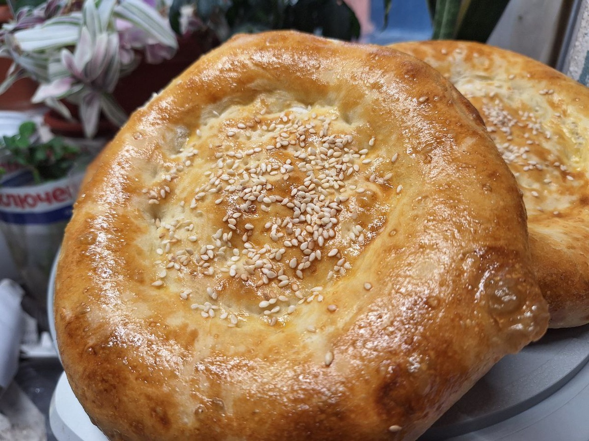 Сформировать лепешки, по краю сделать бортики, середину часто наколоть вилкой и выложить на противень с пергаментной бумагой. Смазать яйцом , еще раз пройтись по середине вилкой и посыпать кунжутом.