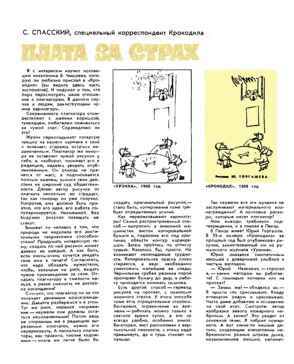 Автор статьи С.Спасский. Журнал "Крокодил". 1970 , № 061