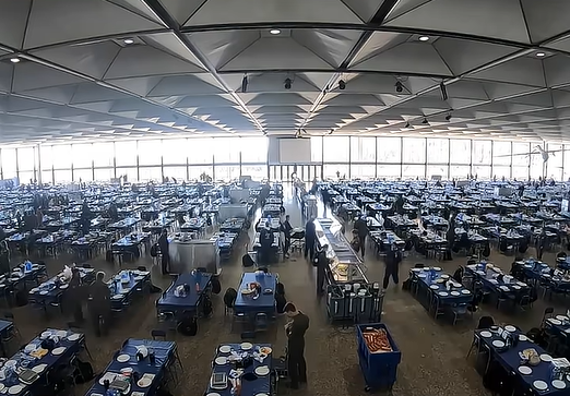 В самом сердце Академии Военно-воздушных сил США находится место, которое трудно забыть хотя бы раз увидев — столовая Митчелл-Холл. Это не просто крупнейший обеденный зал, а настоящий механизм дисциплины, где каждый прием пищи превращается в испытание. Представьте: ровно в обеденное время здесь одновременно собираются около 4 000 курсантов. Огромное пространство наполняется звуками шагов, команд и металлического звона приборов. Но главное — атмосфера. Для младших по званию это не просто обед, а постоянное давление: окрики, требования, строгий контроль за каждым движением. И при этом — парадокс. Еда подается… «по-семейному». Да, именно так. В академии действует принцип семейный стиль: на каждый стол ставят по 10 порций каждого блюда, и курсанты передают их друг другу. На первый взгляд — почти домашняя сцена. Но за внешней простотой скрывается тщательно продуманная система. Передавая блюда по кругу, курсанты учатся взаимодействовать, работать как единое целое, чувствовать ритм команды.