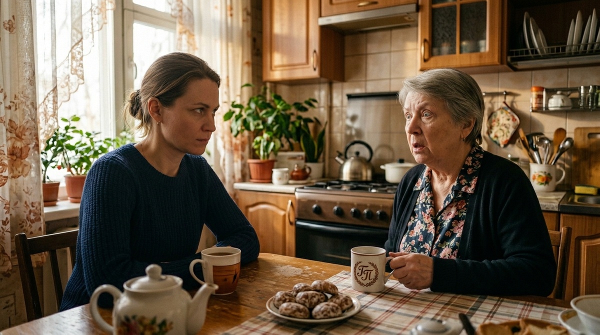 Надежда ещё не успела выпить кофе, когда раздался звонок в дверь. Галина Петровна стояла на пороге — в пальто, с сумкой, с тем выражением лица, которое Надежда за семь лет научилась читать безошибочно: пришла решать.