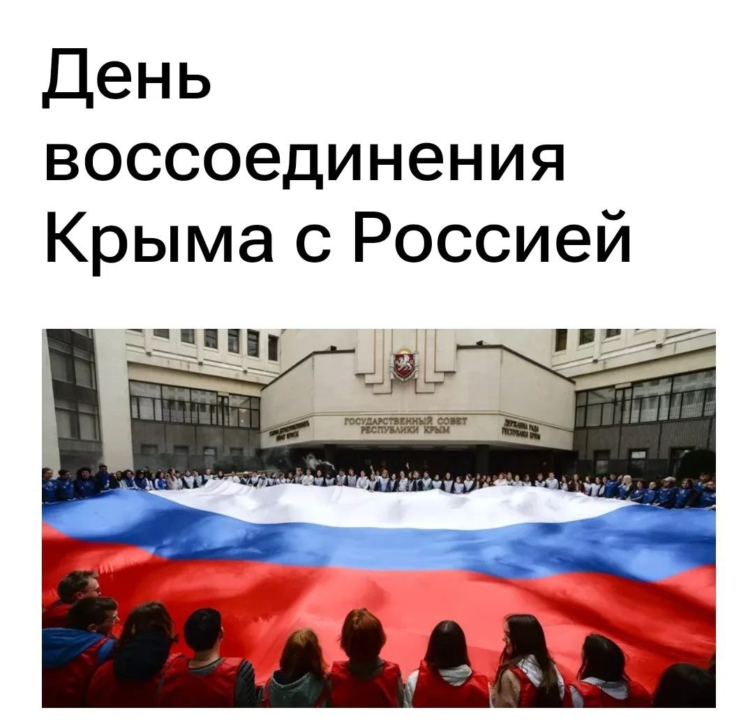 💙 12 лет назад (18 марта 2014 года) на основе результатов референдума был подписан договор о принятии Республики Крым и Севастополя в состав РФ. ❤ Для всей России эта дата стала символом единства. Сегодня Крым и Севастополь по праву являются точками притяжения для активной, талантливой и инициативной молодёжи со всей страны. 🇷🇺 Мы вместе! Этот день стал по-настоящему символом единства всех народов России.