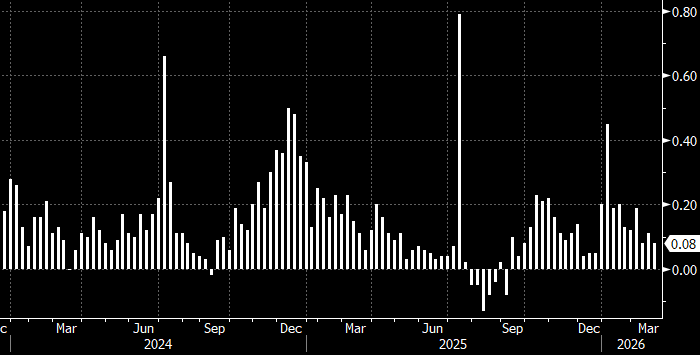 На неделе до 16 марта потребительская инфляция в России замедлилась до 0,08% н/н с 0,11% н/н, зафиксированных в предыдущий отчетный период, сообщает Росстат. Годовая инфляция в РФ, по данным Росстата, ускорилась до 5,91% с 5,88%. Потребительская инфляция в России в базисе неделя к неделе На неделе до 16 марта потребительская инфляция в России замедлилась до 0,08% н/н (минимум с начала года: такой же показатель был достигнут двумя неделями ранее) с 0,11% н/н (второе самое низкое значение с начала года), зафиксированных в предыдущий отчетный период, сообщает Росстат. С начала года накопленный показатель составил 2,59% против 2,71% годом ранее. Годовая инфляция в РФ, по данным Росстата, ускорилась на неделе до 16 марта до 5,91% с 5,88%. «За период с 11 по 16 марта 2026 г. цены изменились: на яйца куриные +1,7%, сахар-песок и соль поваренную +0,5%, колбасы полукопченые и варено-копченые и рыбу мороженую +0,4%, говядину +0,3%, масло подсолнечное, консервы овощные для детского питания, водку