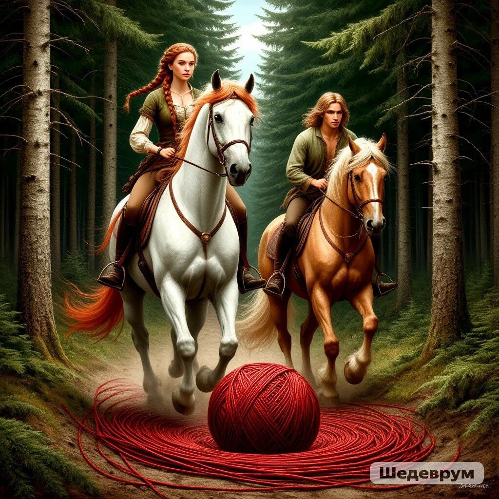 центр леса. Она следовала за красным путеводным клубком, который быстро катился по земле. Владимир, высокий юноша с копной пшеничных волос худощавого телосложения, верхом на Горбунке спешил за подругой. Их окружали лишь высокие хвойные деревья и тьма. #цитата_Ирина_Духина_Коваларис_Там_где_пропадают_всадники #читаю_авторов@shulguna207 #ридеринг