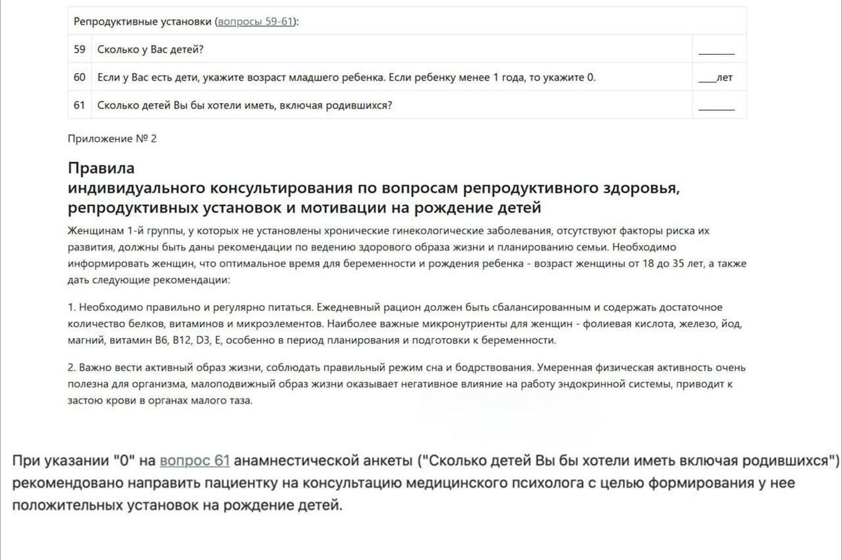 Если во время репродуктивной диспансеризации девушка заявит, что не планирует становиться матерью, ей предложат «добровольную» консультацию. Цель благая: формирование положительных установок на деторождение.⠀ ⠀ Новые методички уже готовят почву для бесед о важности семейных ценностей. Врачи должны будут аккуратно направлять пациенток к специалистам, чтобы те помогли пересмотреть взгляды на пополнение в семье. Весь процесс обещают оставить исключительно добровольным и без принуждения.⠀ ⠀ Главное, чтобы после такой консультации не пришлось лечить еще и аллергию на советы.
