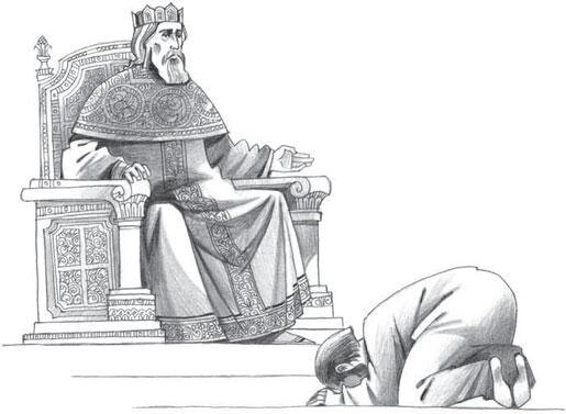 Некий царь поставил любимого слугу своего держать имение царское и править градом своим. И стал слуга милостыню творить из царской казны, нагих одевать и голодных насыщать. И за многие лета ни один человек не прослезился от него. Но донесли царю, что казна истощилась во граде его. И повелел царь позвать к нему слугу своего верного и упрекал его за расточение богатств. Но ответил слуга царю: «Казна твоя будет полна во веки веком!» Почел царь за дерзость ответ такой и заточил слугу своего в темницу. И той же ночью увидел царь сон, как ходил он по Царствию Небесному, ведомый ангелом, и видел палаты изукрашенные, над вратами которых надписано имя его. А рядом стоял малый терем, над дверями которого было имя слуги его верного. И говорил ангел царю: «Слуга твой уготовил место тебе во Граде Божием, ибо щедро давал он милостыню от имени твоего». И, проснувшись, вывел царь из темницы верного слугу, и просил у него прощение за гнев свой, и вновь доверил ему все имения во граде своем. Истинные бо