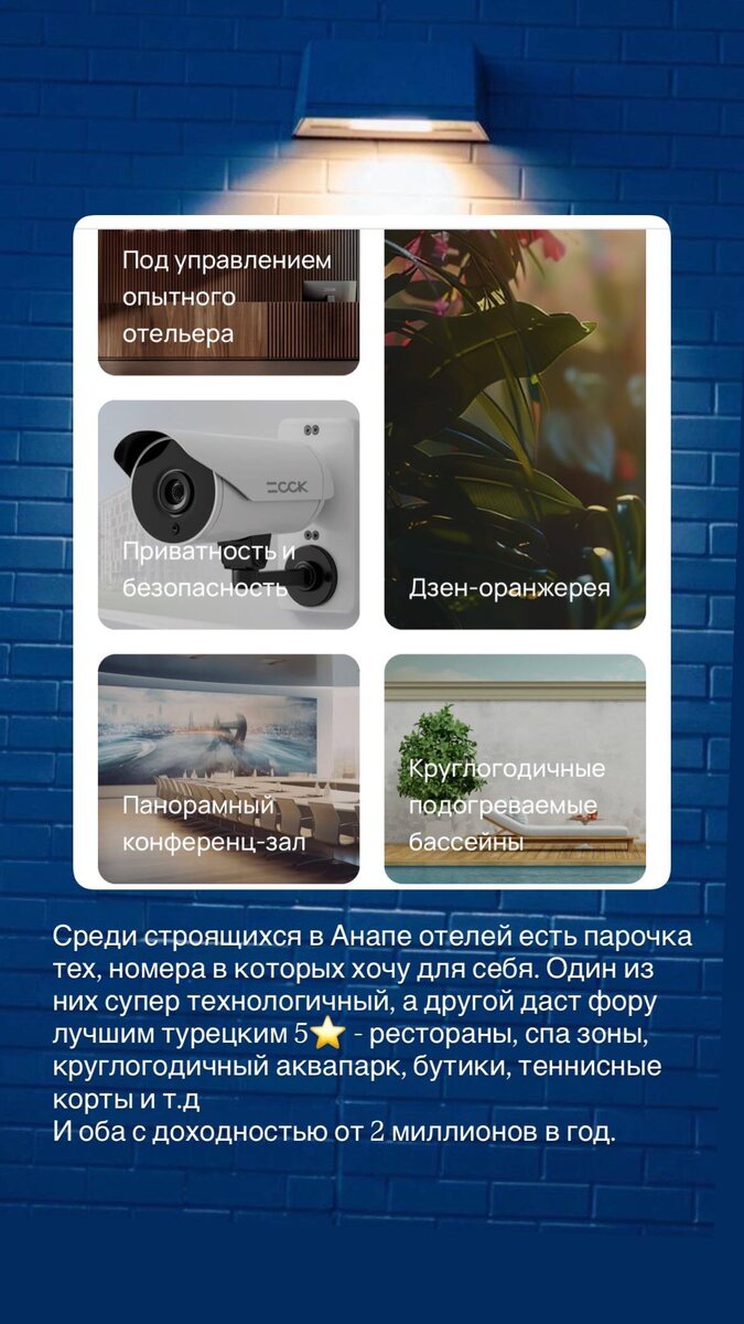 Себе я купила бы номера в двух отелях. Есть конечно и более скромные варианты, но и доход там скромнее