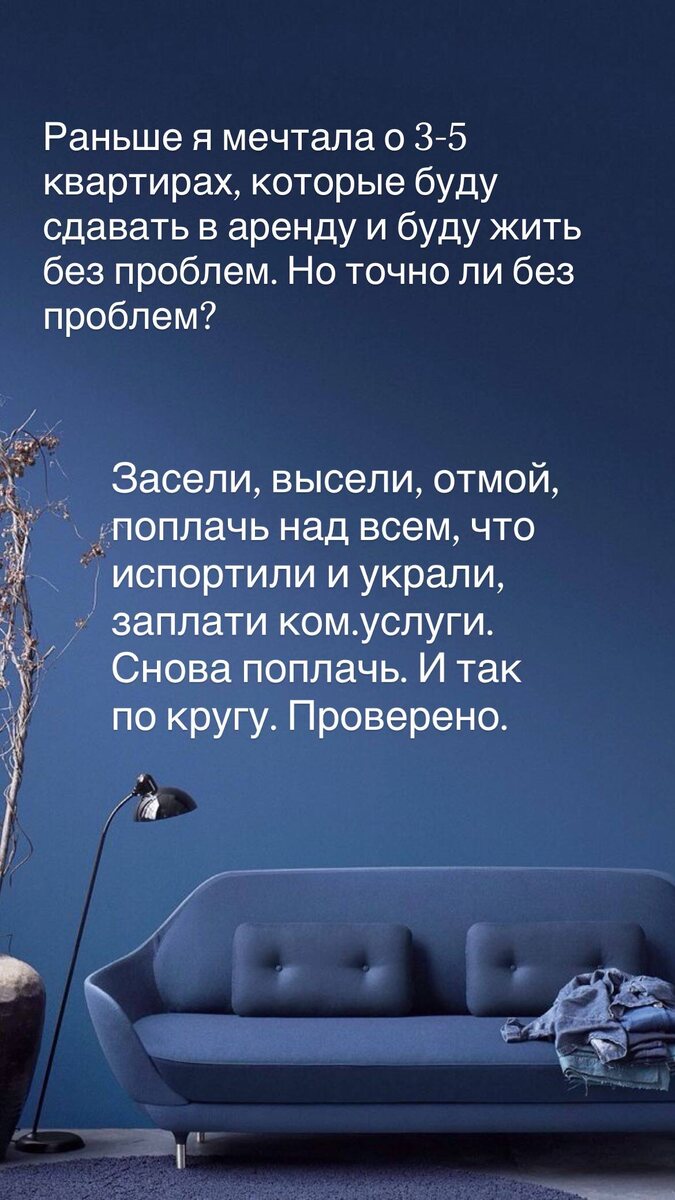 Раньше я мечтала о 3-5 квартирах. Но сейчас я умнее😄