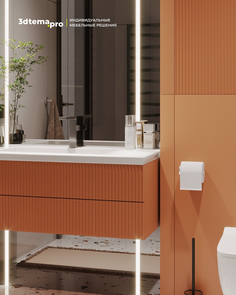 В предыдущем посте мы показали фасад крупным планом, а теперь — на примере готового интерьера санузла 🛁 Ванная комната — хороший тест для любого фасада: влажно, тепло, перепады. Эмаль справляется без вопросов, рельеф остается таким же четким, а цвет — насыщенным! Повторим для вашего проекта в нужном цвете и размере 👌 📱 @tema3d_imr 📩 info@3dtema.ru 📲 Читать в MAX