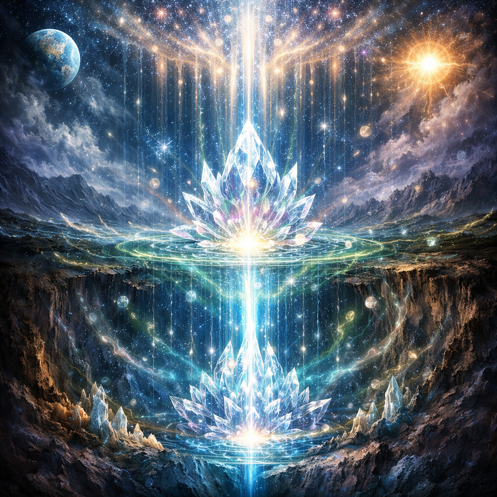 А есть частицы потенциала, которые сокрыты в пространстве энергоинформационного поля планеты Земля, в космическом пространстве. И так всё построено. И в глубинных недрах мироздания есть истинный кристалл потенциала. И сейчас идут энергетические потоки, которые высвобождают этот потенциал. Он будет распределён через энергетические пространства, распределён по всем точкам.