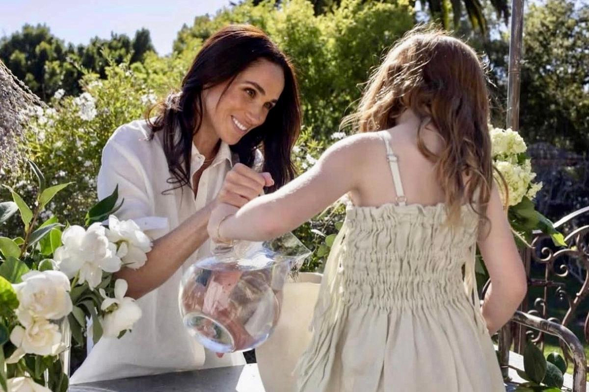 На опубликованных кадрах Меган стоит у садового стола среди белых цветов и ваз, а рядом с ней — Лилибет в