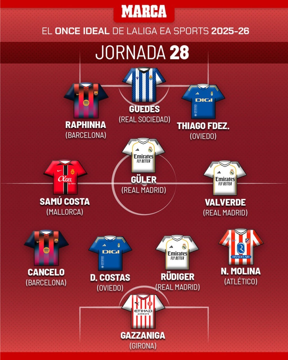 Рюдигер, Вальверде и Гюлер попали в символическую сборную 28-го тура Ла Лиги по версии Marca