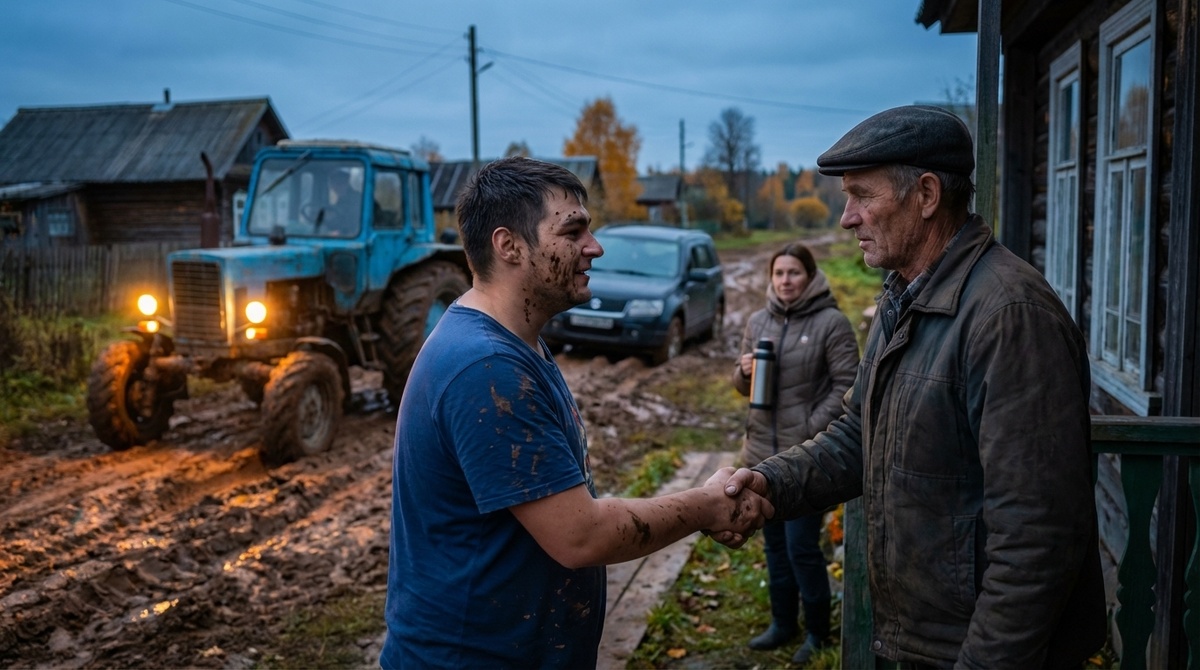 Михалыч включил пониженную. Трактор рыкнул, пустил черный дым из трубы. Трос натянулся как струна, со скрипом сбрасывая с себя воду. Моя машина крякнула и... поползла. Медленно, с чавканьем, оставляя за собой ровные траншеи в глине, трактор выволок меня на тот самый щебень, который мужики клали.