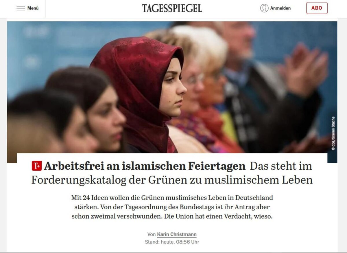 Партия «Зеленых» в Германии предлагает в Бунденстаге план из 24 пунктов для «продвижения исламского образа жизни