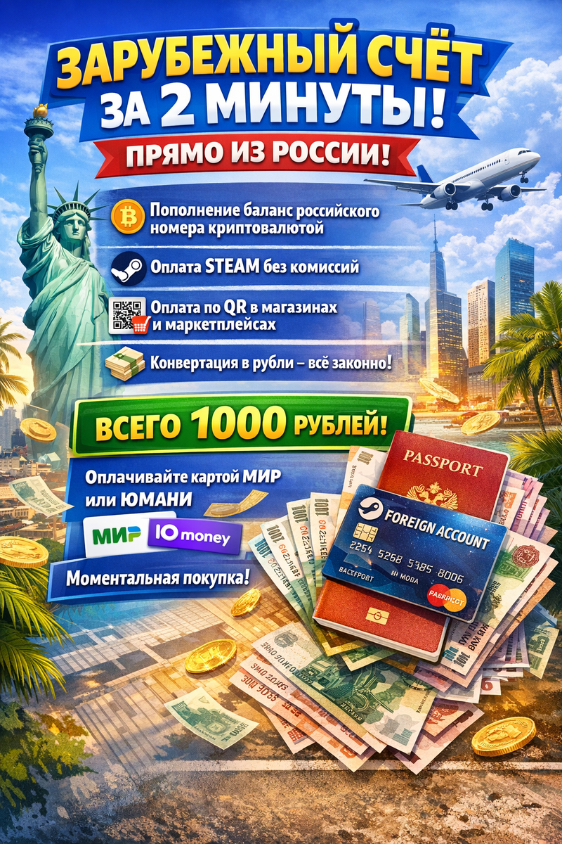 В марте 2026 года каждый второй банкрот в России сталкивается с полным отказом отечественных банков в открытии счетов и карт, но виртуальная карта зарубежного эмитента возвращает полную финансовую свободу. Этот зарубежный счет не виден приставам и финансовому управляющему, поэтому покупки на всех российских маркетплейсах проходят без единого вопроса. Просто привяжите виртуальную Visa к аккаунту Wildberries, Ozon или Avito — и платите как обычной картой. В обычных магазинах по всей стране — Пятёрочка, Магнит, аптеки или кафе — достаточно отсканировать QR-код по СБП: система мгновенно спишет криптовалютой нужную сумму, конвертирует в рубли и проведёт платёж. Продавец получает обычные рубли, а вы тратите именно криптовалютой, экономя на курсах и комиссиях. То же самое работает для оплатить мобильный телефон криптовалютой — баланс пополняется за секунды без риска блокировки. С крипто-счетом вы свободно переводить деньги по всему миру и принимать деньги от партнёров из любой страны. Лимиты