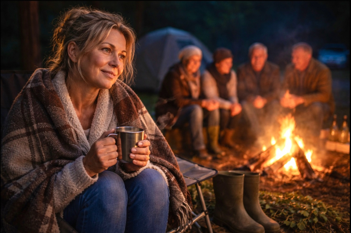 Ночь опустилась быстро. Костёр горел ярко, звёзды высыпали на небо, как горох. Алексей сидел у огня, смотрел на пламя. Рядом примостилась Марина. Остальные разбрелись — кто в палатку, кто к воде, кто просто прогуляться.