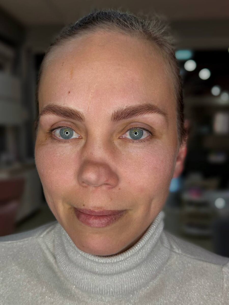💔 В 2021 году я хотела начать делать эту технику, но не нашла моделей.. Потом решила что мне слишком редко нравятся зажившие работы волосков и бросила эту идею. Сейчас вижу что спрос на нее растет, а «стоять на месте я не люблю». Индустрия меняется и важно уметь подстраиваться. Мне нравится как получилось) А вам? Безусловно работы непочатый край - надо найти тот самый «идеальный штрих» и пройти большой путь к красивым зажившим работам. На это уйдет не один год. Не знаю во что это выльется, но первый шаг сделан. Техника действительно не простая и в процессе я испытывала разные эмоции. Но главное, мы с моделью очень довольны результатом 🥰 Посмотрим как это еще заживет. P.S. Я знаю, что пройдет время, я посмотрю на эту работу и подумаю «О, Боже, какой кошмар» 😄 На видео брови сразу после процедуры и до (у девушки ранее уже были волоски)