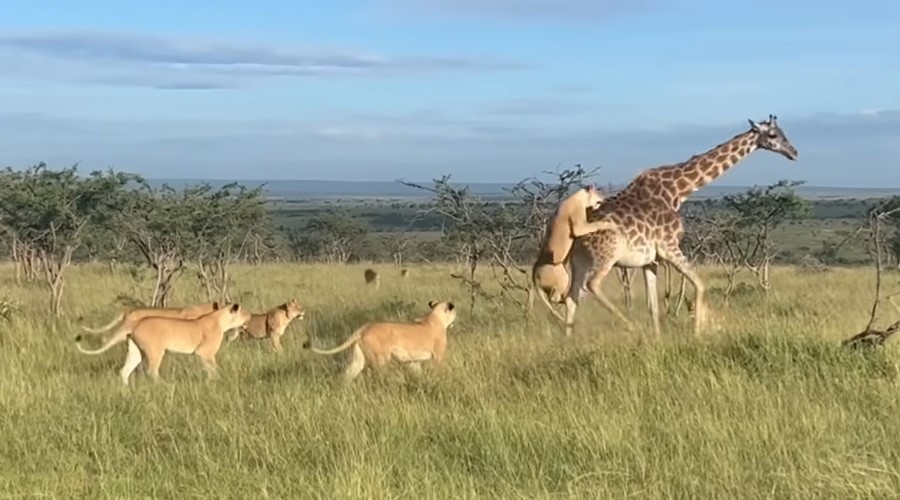 Большинство львов предпочитают нападать на жирафов только огромным прайдом, и то лишь в случае крайнего голода, так как риск получить травму, несовместимую с жизнью, слишком велик.