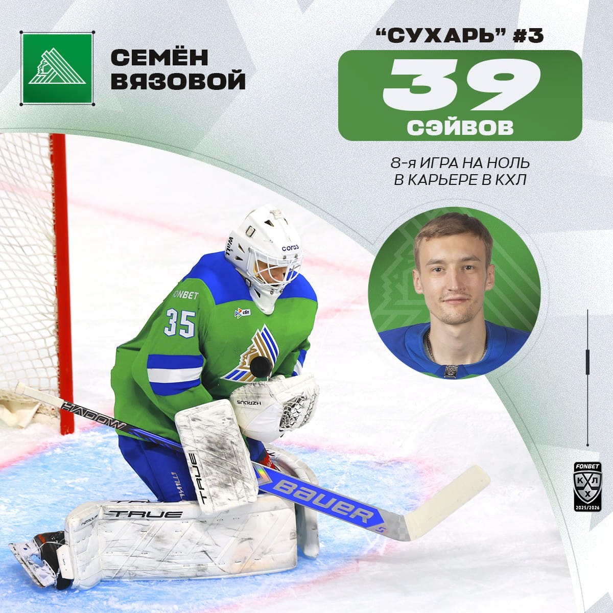 Не просто «сухарь» Семёна Вязового 💚, а повторение личного рекорда по сэйвам в матче на ноль!