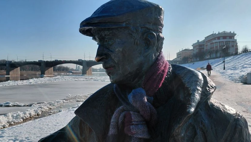 Бронзовый рыбак с деревянной удочкой и бронзовым котом на набережной Степана Разина в Твери вновь сменил имидж. Кто-то заботливо укутал любителя рыбной ловли теплым шарфом. Бронзовый памятник рыбаку на набережной Степана Разина в Твери известен многим, прежде всего потому, что у рыбака несколько раз воровали удочку. Теперь у него деревянная удочка, примотанная к руке скотчем. Популярность памятника заключается еще в том, что в городе родились легенды, связанные с ним. Если присмотреться, некоторые части памятника блестят. Туристы трут памятник на счастье и для удачи. А в сапог кладут монетки, чтобы вернуться в Тверь еще раз. В этом году бронзового парня не баловали обновками, всю зиму он простоял в "чем мать родила", то есть в бронзовых одежках. А вот в марте кто-то решил нарядить рыбака и укутал его теплым, шерстяным шарфом. фотографии сделаны 17 марта.