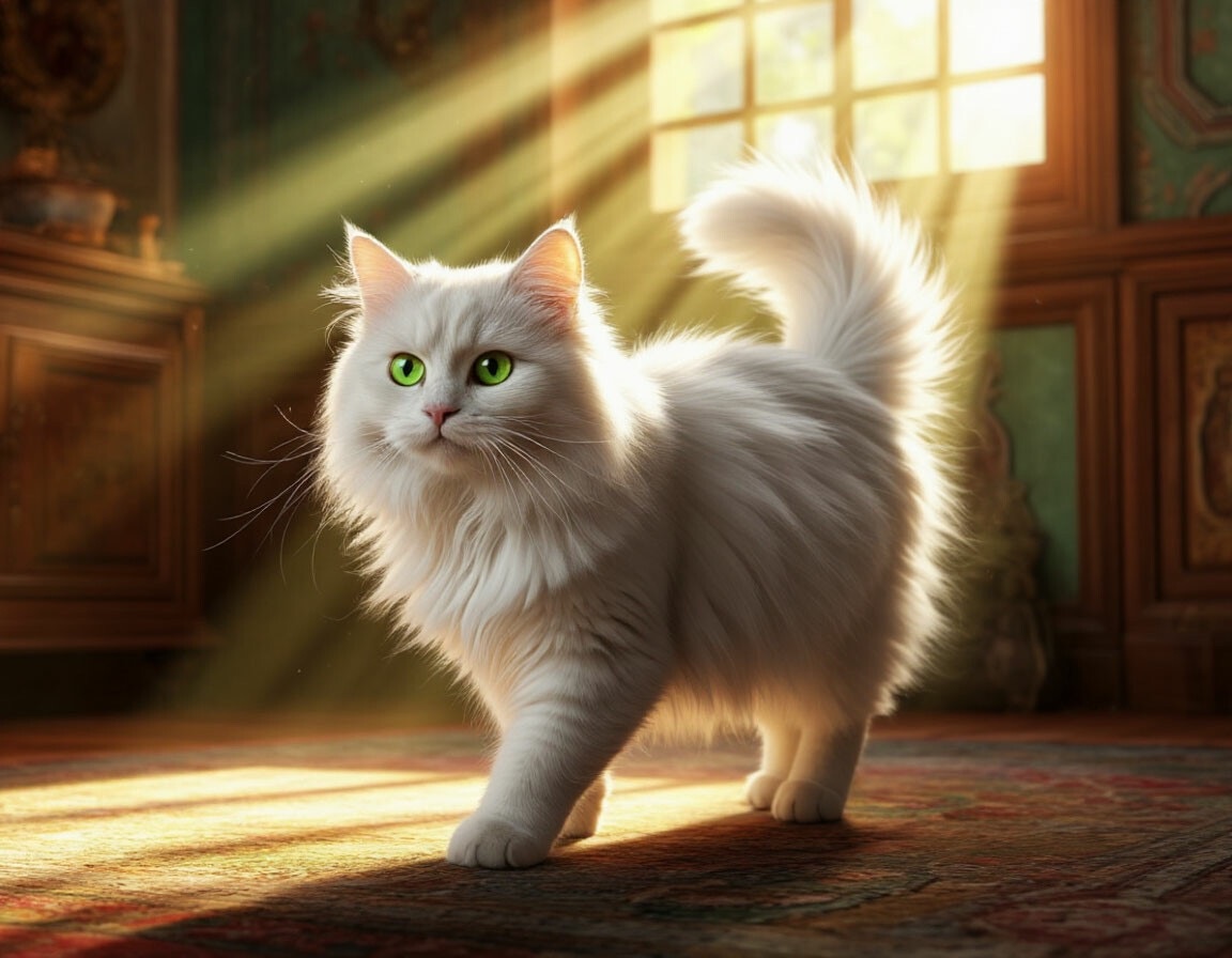Однажды белый пушистый котик гулял по своему дому. Он важно ходил по комнатам и проверял – все ли вещи лежат на своих местах. Может, появилось что-нибудь новенькое, а он и не знает! Поэтому, как полагается настоящему хозяину, котик заходил в каждую комнату, рассматривал все своими большими зелеными глазами и обнюхивал своим маленьким розовым носиком. А если было нужно, мог даже осторожно потрогать своей пушистой лапкой – вдруг шевелится или шуршит.