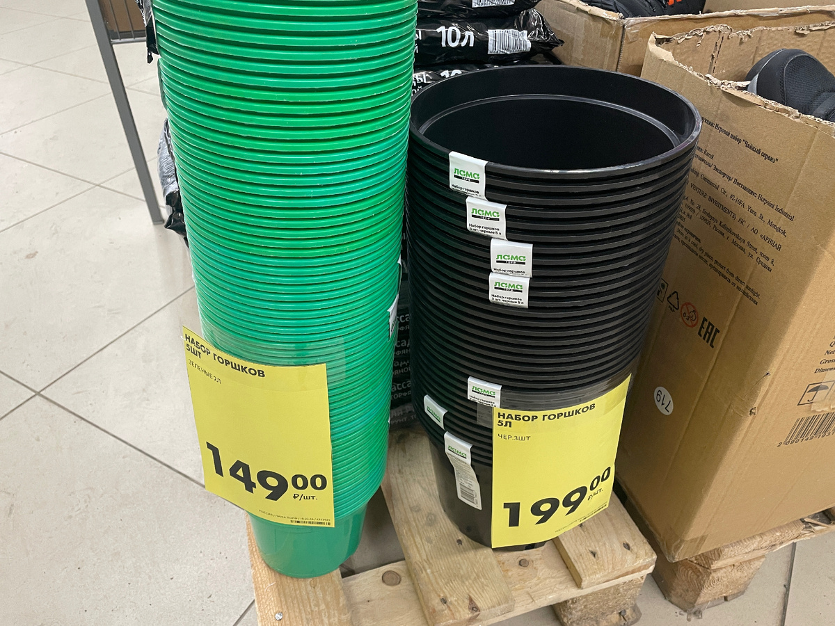 Эти новинки уже для чего-то более масштабного. Горшков зеленых по 5 штук, черных по 3.