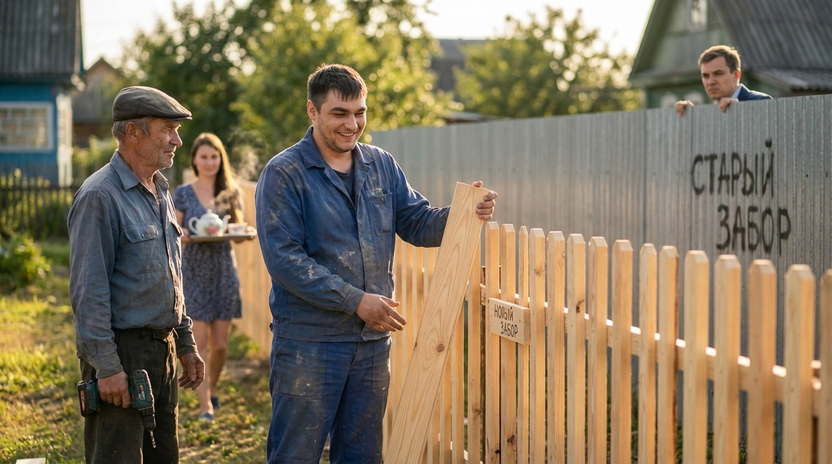 — А то и предлагаю. Зачем нам чужих людей кормить, бригады эти нанимать? Мы что, не мужики? Руки из правильного места растут. Давай штакетник нормальный поставим. Деревянный. На совесть. С меня — лес. У меня в сарае куба два отличной обрезной доски-дюймовки лежит, еще зимней рубки, сухая как порох. А с тебя — столбы металлические профильные и цемент. Скинулись, встали в выходные и сделали. И границу по старым колышкам пустим, я их еще с отцом твоих продавцов вбивал, там всё по чести, ни на сантиметр я твою землю не заберу.