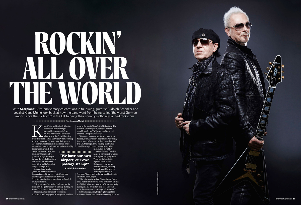 В разгар празднования 60-летия SCORPIONS гитарист Рудольф Шенкер и вокалист Клаус Майне вспоминают, как группа прошла путь от клейма «худшего немецкого импорта» в Великобритании до статуса официально признанных икон рока в родной стране.
