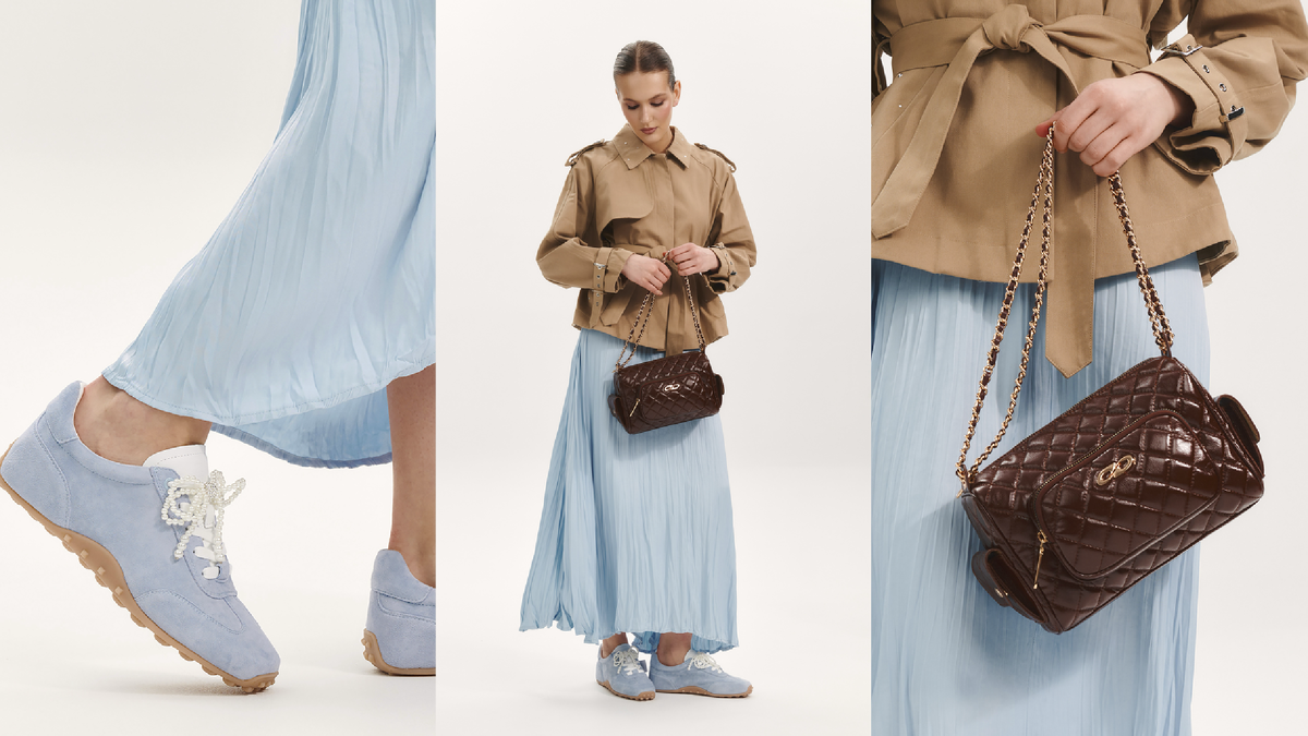 Нежно-голубой — один из ключевых оттенков весны 2026 по версии Pantone. Лёгкий, свежий и немного романтичный, он задаёт настроение всему гардеробу и легко вписывается в повседневные сочетания. В новой коллекции kari этот оттенок получил особенно стильное прочтение — в спортивных полуботинках в винтажной эстетике от Pierre Cardin. Натуральная замша и кожа делают модель визуально благородной, а деликатные детали в виде бантов из жемчужных бус добавляют образу мягкости и лёгкой наивности. Полуботинки Pierre Cardin выполнены из натуральных материалов, сочетают винтажный стиль и современные детали, добавляя образу свежести и женственности. Контрастным акцентом выступает клатч kari TRENDS в глубоком шоколадном оттенке — он уравновешивает нежную палитру и делает сочетание более выразительным. Глянцевая стёганая модель в насыщенном оттенке добавляет глубины и завершает сочетание. Такой баланс мягкости и контраста делает образ актуальным, запоминающимся и при этом легко носибельным каждый день