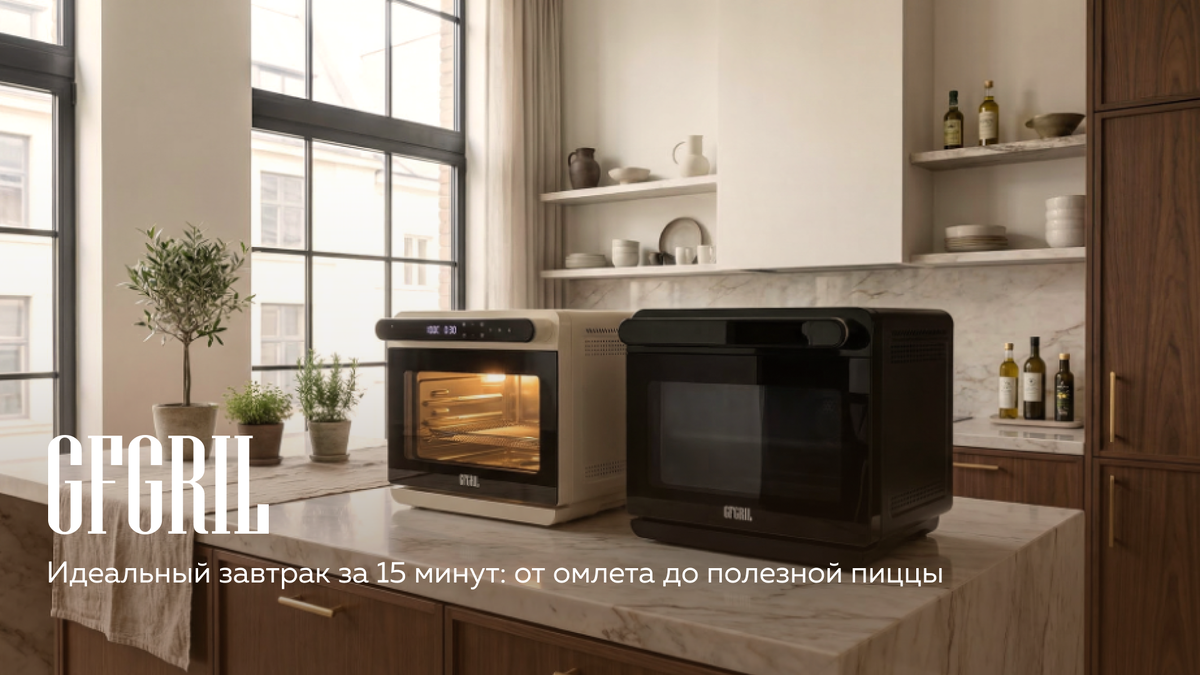 Встречайте героя нашего сегодняшнего разговора - многофункциональную мини-печь GFGRIL GFOO-12. Это компактный, но невероятно мощный кухонный прибор, который объединяет в себе функции духового шкафа, пароварки и аэрогриля. С его помощью вы сможете готовить идеальный завтрак за 15 минут, не жертвуя ни вкусом, ни пользой, ни своим временем.
