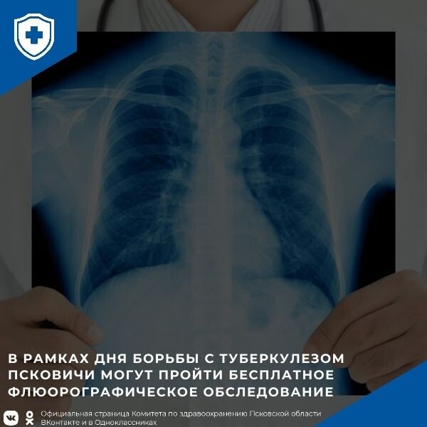 📌 В Псковской области пройдут бесплатные профилактические мероприятия, приуроченные к Всемирному дню борьбы с туберкулёзом. Специалисты напоминают, что регулярная диагностика необходима для выявления болезни на ранних стадиях. 📅 22 марта с 12:00 до 18:00 в ТДЦ «Fjord Plaza» медики и волонтёры проведут консультации по вопросам профилактики и факторам риска. ✅ 24 и 25 марта с 08:00 до 12:00 будет работать мобильный флюорограф у противотуберкулёзного диспансера по адресу: ул. Красноармейская, 16. Обследование доступно для всех желающих. 👉ВЛуки.ру