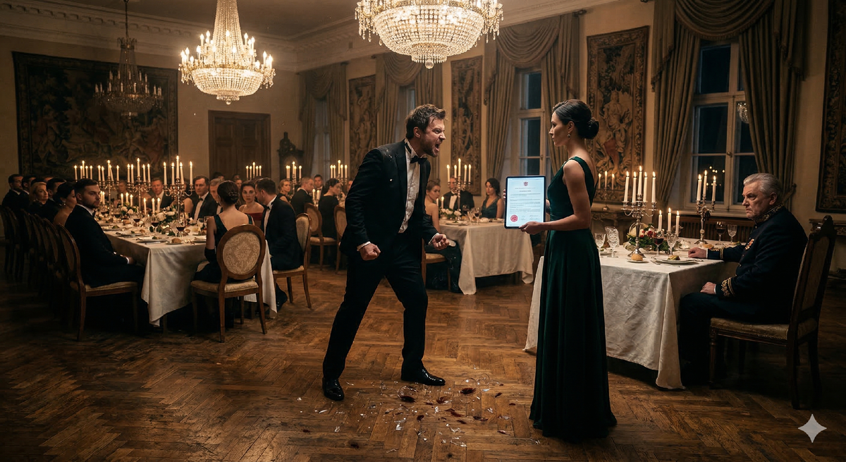 Сорок человек замерли. Среди них были партнеры отца, чиновники из мэрии, их надушенные жены в шелках. Воздух в зале стал густым, как застывающий парафин. 19:12. Я запомнила это время на огромных напольных часах у входа. Именно в эту секунду я поняла, что точка невозврата пройдена.