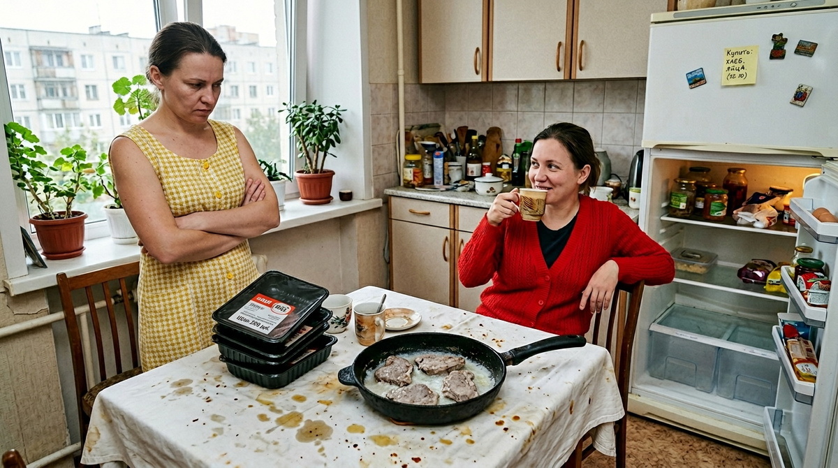 Завтра позвонит свекровь. Скажет, что Зоя рыдала всю ночь, что Ольга бессердечная, что «из-за какого-то мяса». Именно так: «из-за какого-то мяса». Как будто шестнадцать вечеров переработки в январе, когда Ольга сидела в офисе до девяти, сверяла чужие балансы и пила остывший кофе из автомата, а сын Тимур звонил и спрашивал «мам, ты когда?», — как будто всё это не стоит ничего.