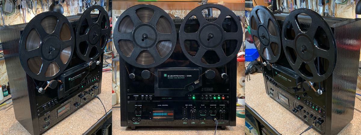Единственный минус - невозможно сфотографировать эту красоту, всё время что-то отражается. Из наворотов: две дороги, пятнадцать дюймов/сек, автореверс, поиск ноля, таймер, адаптивное подмагничивание, плавный старт перемоток и так - по мелочи. Что касается счётчика и индикатора… Заказчик пожелал оригинал.