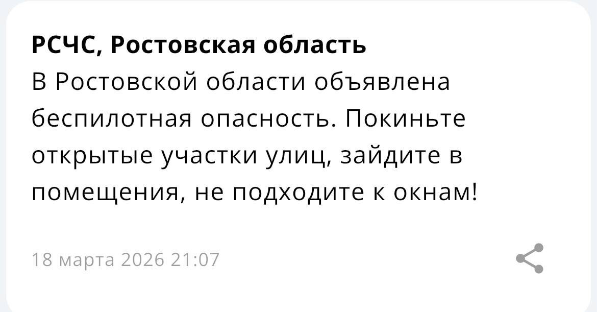 ‼️ В Ростовской области объявлена беспилотная опасность.