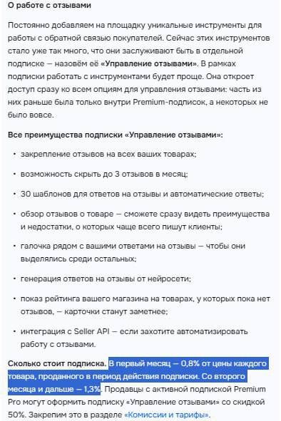 С 1 апреля Ozon запускает платную подписку «Управление отзывами» — автоматически подключается для части продавцов с недельным пробным периодом. Тариф: 0.8% от продаж в первый месяц, 1.3% со второго, скидка 50% для Premium Pro. Почему важно: • Дополнительные расходы: комиссия 0.8%-1.3% от каждого проданного товара — прямая финансовая нагрузка. • Автоматическое подключение: часть продавцов получат подписку без явного согласия, нужен контроль. • Пробный период: неделя бесплатно, затем автоматический переход на платный тариф — риск пропустить отключение. Гипотезы: • Ozon расширяет платные сервисы для монетизации — ждите новых подобных инициатив. • Автоматическое подключение — стратегия для быстрого охвата, чтобы «зацепить» больше селлеров. • Скидка для Premium Pro может подтолкнуть к апгрейду тарифов — классический upsell. Что делать селлеру: • Проверить кабинет: подключена ли подписка автоматически с 1 апреля. • Оценить необходимость: нужны ли функции закрепления, скрытия до 3 отзывов в м