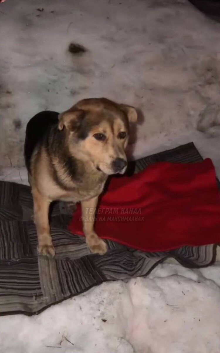 В Зеленом Бору собака осталась у дороги, ожидая своих хозяев.