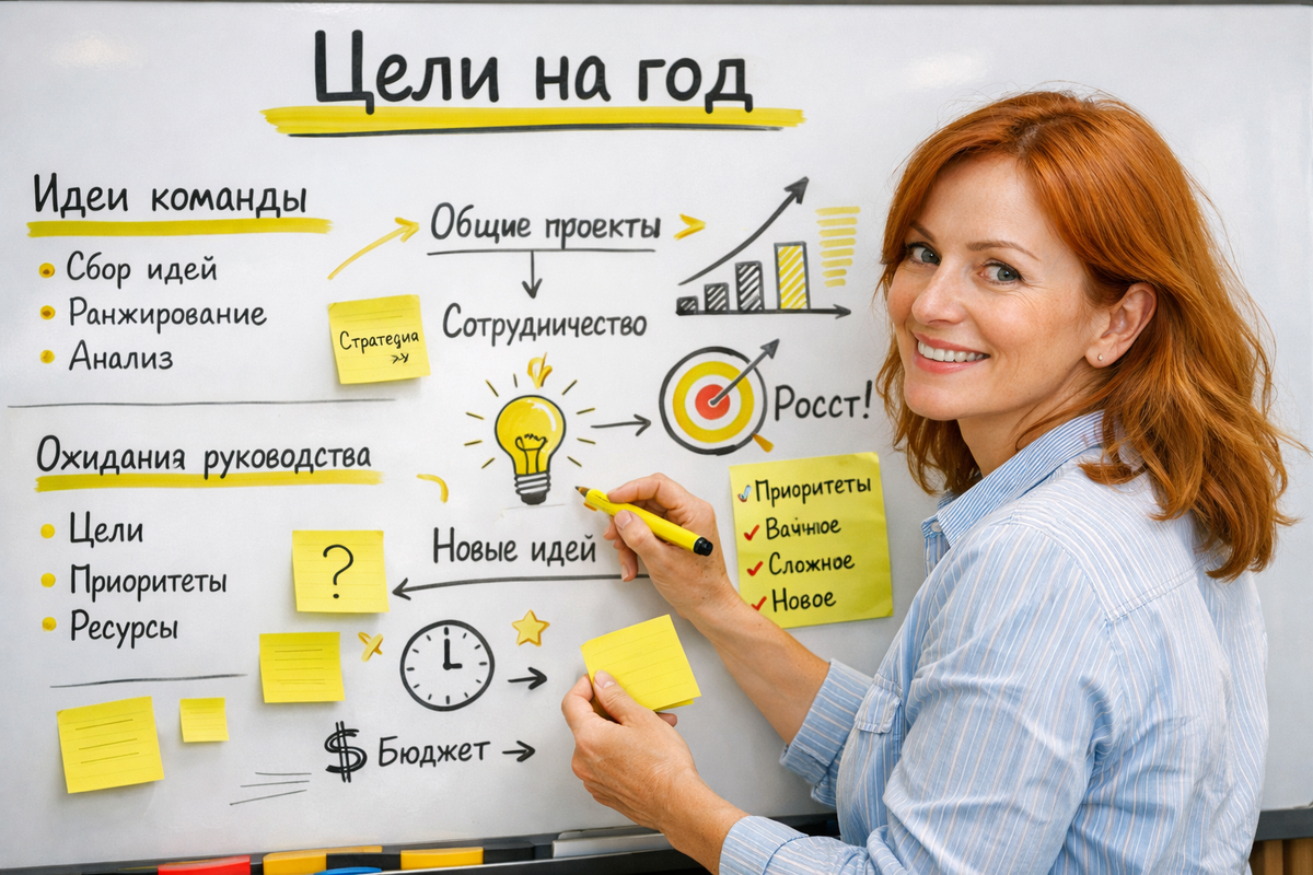 Льюис Кэрролл Периодически у каждого руководителя наступает момент, когда нужно остановиться и сформулировать цели для себя и команды. Это может быть начало года, новый проект или просто ощущение, что движение стало слишком инерционным. В такие периоды особенно важно не хвататься за первый удобный вариант, а посмотреть на задачу шире. Целеполагание редко бывает линейным процессом. Это скорее аккуратная сборка из разных источников: ожиданий, идей, наблюдений и даже сомнений. И чем спокойнее и внимательнее мы подходим к этому процессу, тем более живыми и реализуемыми получаются будущие планы. Первый естественный шаг — обратиться к своей команде. У сотрудников уже есть накопленные мысли, предложения и запросы от смежных направлений. Если дать им пространство высказаться, можно получить неожиданно цельную картину. • 💬 Сбор инициатив. Люди видят узкие места и перспективы в ежедневной работе, поэтому их идеи часто практичны и