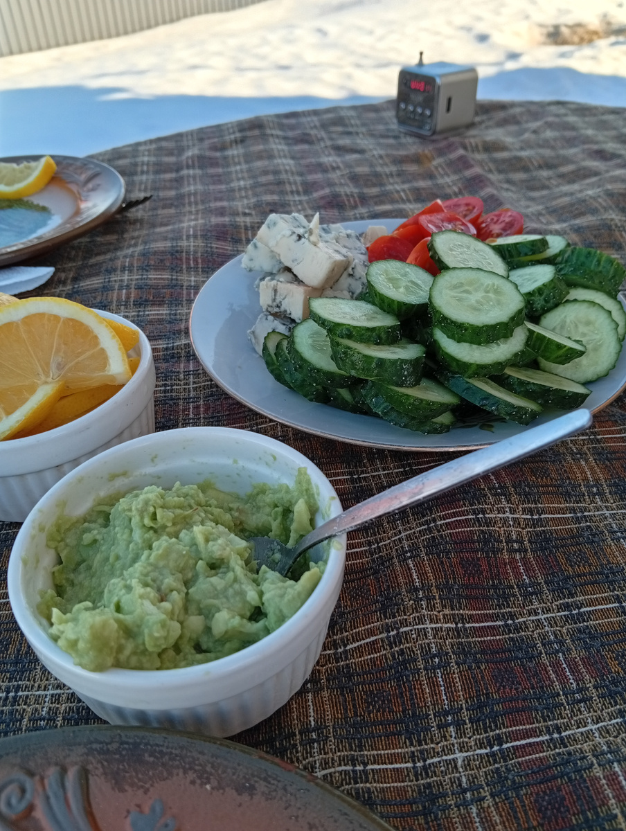 С муссом из авокадо отлично идут овощи,- огурцы м помидоры. Помидоры люблю покупать Черри именно марки. Хоть упаковка и небольшая нам ее хватает на 2-3 раза. Эти черри сладкие, вкусные и имеют вкус настоящих летних помидор, что важно сейчас, весной, в период недостатка всивмиерв.