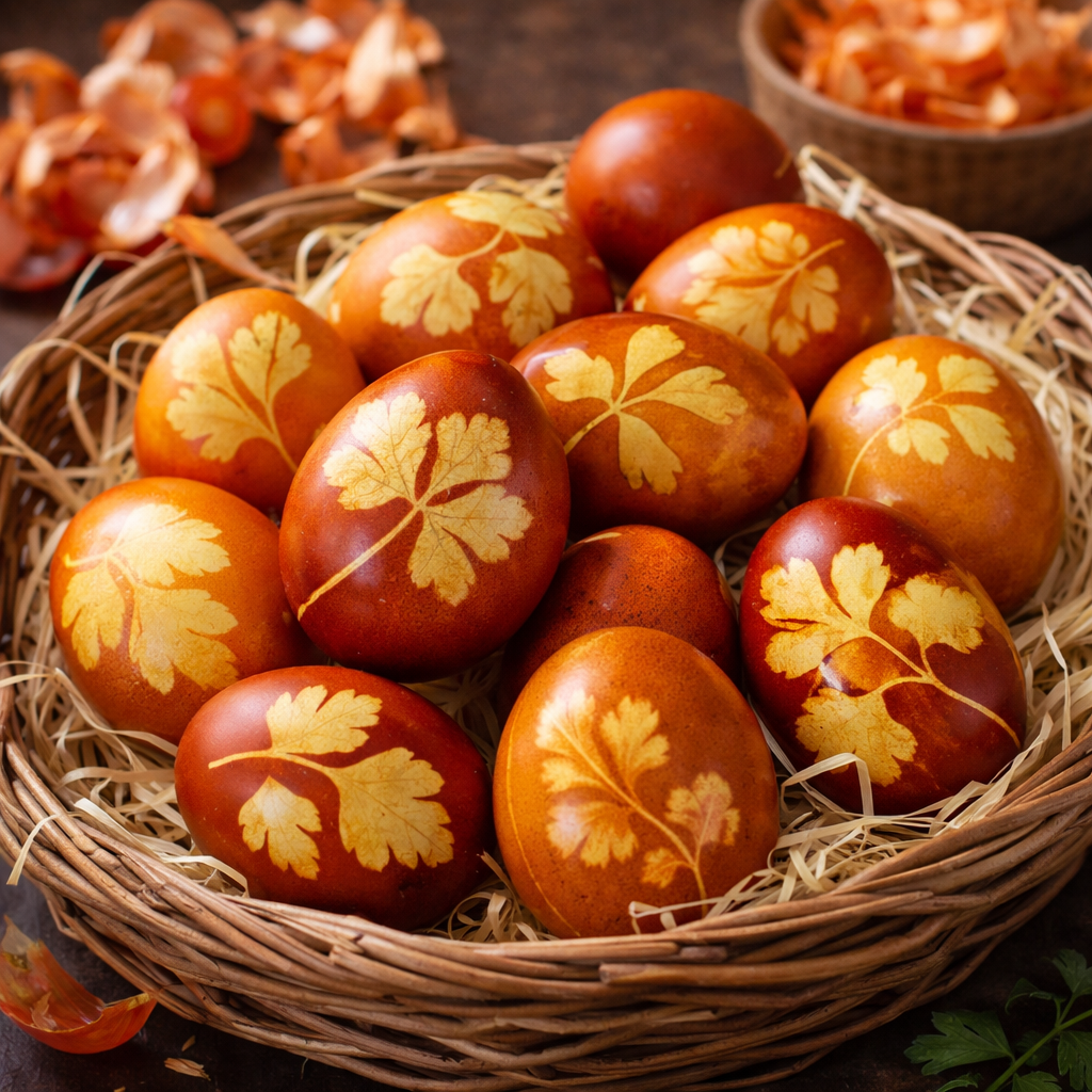 Луковая шелуха дает глубокие, теплые оттенки - от золотистого до насыщенного кирпично-бордового.