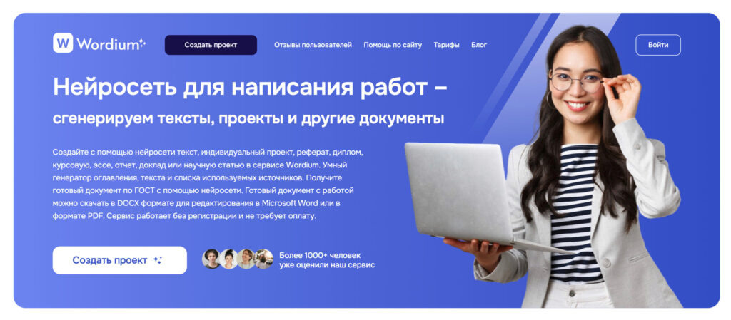 Wordium — нейросеть, заточенная под студенческие работы. Отличие от ChatGPT — сервис генерирует не просто текст, а готовый документ с оформлением по ГОСТ 2026, списком литературы и структурой ВКР.