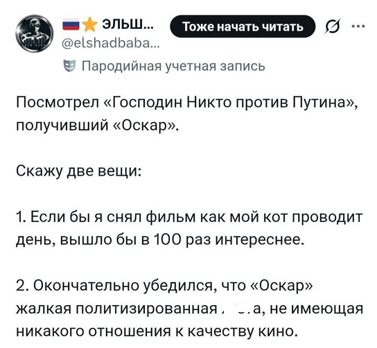 Я смотрел этот фильм и вот что я вам скажу: это... просто... лучшая реклама России! Я рад, что он получил Оскар, и мне кажется это заслужено. Если бы нашей информ политикой и мягкой силой занимались нормальные люди, то его стоило бы показать по федеральным каналам и прокатить по всем фестивалям: Кинотаврам, минотаврам, ММКФ и проч. Смотрел некоторое время назад, так что не все детали помню. Сюжет не в Москве или Питере, а в каком-то самом мелком городе, о котором никто не знает. И в этом захолустье, в этой тьмутаракани - школа оснащённая по последнему слову техники (ну разве что ремонт старый). Это бесплатная абсолютно обычная школа. С компами, проекторами, камерами и проч там порядок полный. В этой школе есть вакансия... Видеографа-фотографа, Карл! Чувак не ведёт никаких уроков, он видеограф, фотограф ну и на полставки массовик затейник как я понял. Далее там по сюжету его коллеге, школьному учителю, дарят квартиру. Дарят. Квартиру. При четырёх годах операции, тысячах санкций,