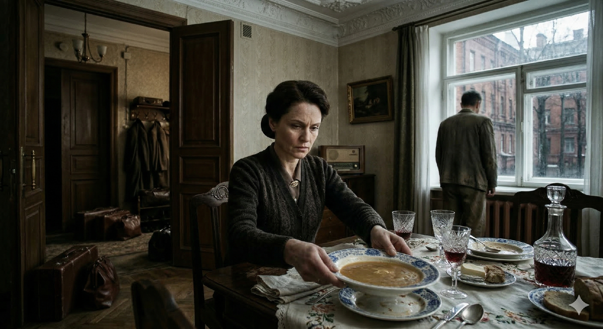 Алла вернулась к столу. Она села на свое место, взяла ту самую серебряную ложку и брезгливо отодвинула тарелку с холодным жиром.