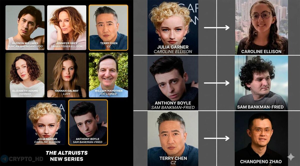 ». Премьера ожидается во второй половине 2026 года (официальной даты пока нет). Сюжет: взлет и падение Сэма Бэнкмана-Фрида и Кэролайн Эллисон. Два «гения», которые хотели изменить финансовую систему, а в итоге «потеряли» $8b чужих денег. Из интересного: ▪Продюсер – студия Барака и Мишель Обама (Higher Ground). ▪Сценарист – автор фильма «Игра в имитацию». ▪Количество серий: 8. Актерский состав: ▪Джулия Гарнер → Кэролайн Эллисон, CEO Alameda Research. ▪Энтони Бойл → Сэм Бэнкман-Фрид, основатель FTX. ▪Терри Чен → Чанпэн Чжао (CZ), глава Binance. ▪Алекс Лоутер → Сэм Трабукко, со-CEO Alameda Research. ▪Мэтт Райф → Райан Саламе, топ-менеджер FTX. ▪Мэдисон Ху → Констанс Ванг, сотрудница FTX. ▪Каран Сони → Нишад Сингх, инженер и один из ближайших соратников Сэма Бэнкмана-Фрида. ▪Юджин Янг → Гэри Ванг, сооснователь FTX. ▪Наоми Окада → Клэр Ватанабе, сотрудница Alameda/FTX. ▪Хадсон Уильямс → Дункан Рейнгэнс-Ю, участник крипто-окружения. ▪Дженнифер Грей → Сара Фишер Эллисон, мать Кэролайн Элл